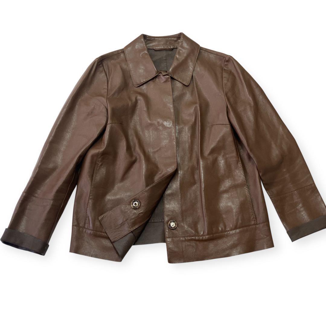 - S Max Mara エス マックスマーラ レザー ジャケット ショート丈 ブラウン 36 レディース ラム 羊革