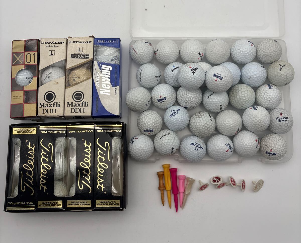 > ゴルフボール 未使用8箱+箱なし30個 まとめて ゴルフピン?つき Dunlop? Callaway?Newing? Lサイズ? スポーツ 送料無料