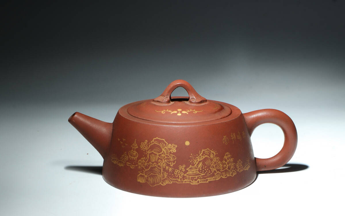 > 『古』【底款・飛鶴延年】重量273g 朱泥 段泥 煎茶道具 急須 単孔口 唐物 孟臣 紫砂壺 紫砂壷 茶壷 茶壷 明代/清代