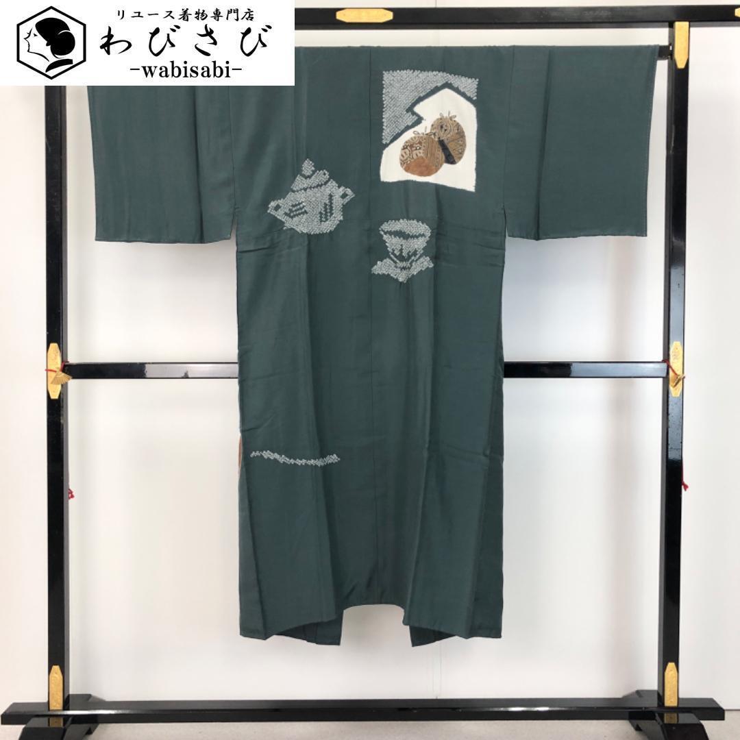 > 男襦袢 長襦袢 男物 仕覆 絞り 湊煤竹色 U-1512 着物 きもの kimono 和服 和装 中古 リサイクル着物 【送料無料】
