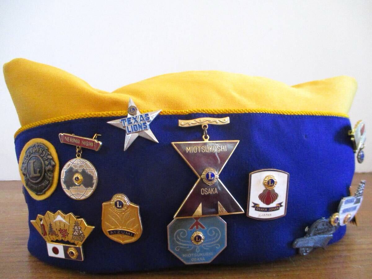 > 【レア】LIONS CLUB ライオンズクラブのピンバッジ(24個)&MITSUWA CROWN CAP 帽子 コレクション ビンテージ コレクターアイテム 収集 雑貨
