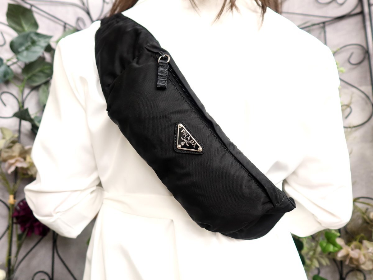 - ●超美品●PRADA プラダ●三角ロゴプレート●ポコノ ナイロン●ウエスト ポーチ ボディ バッグ●黒●シルバー金具●イタリア製●Js60354