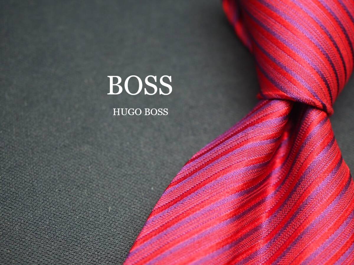 > 美品【HUGO BOSS ヒューゴ ボス】 F2267 赤ワイン系 SILK ブランド ネクタイ 古着 良品 転売 仕入