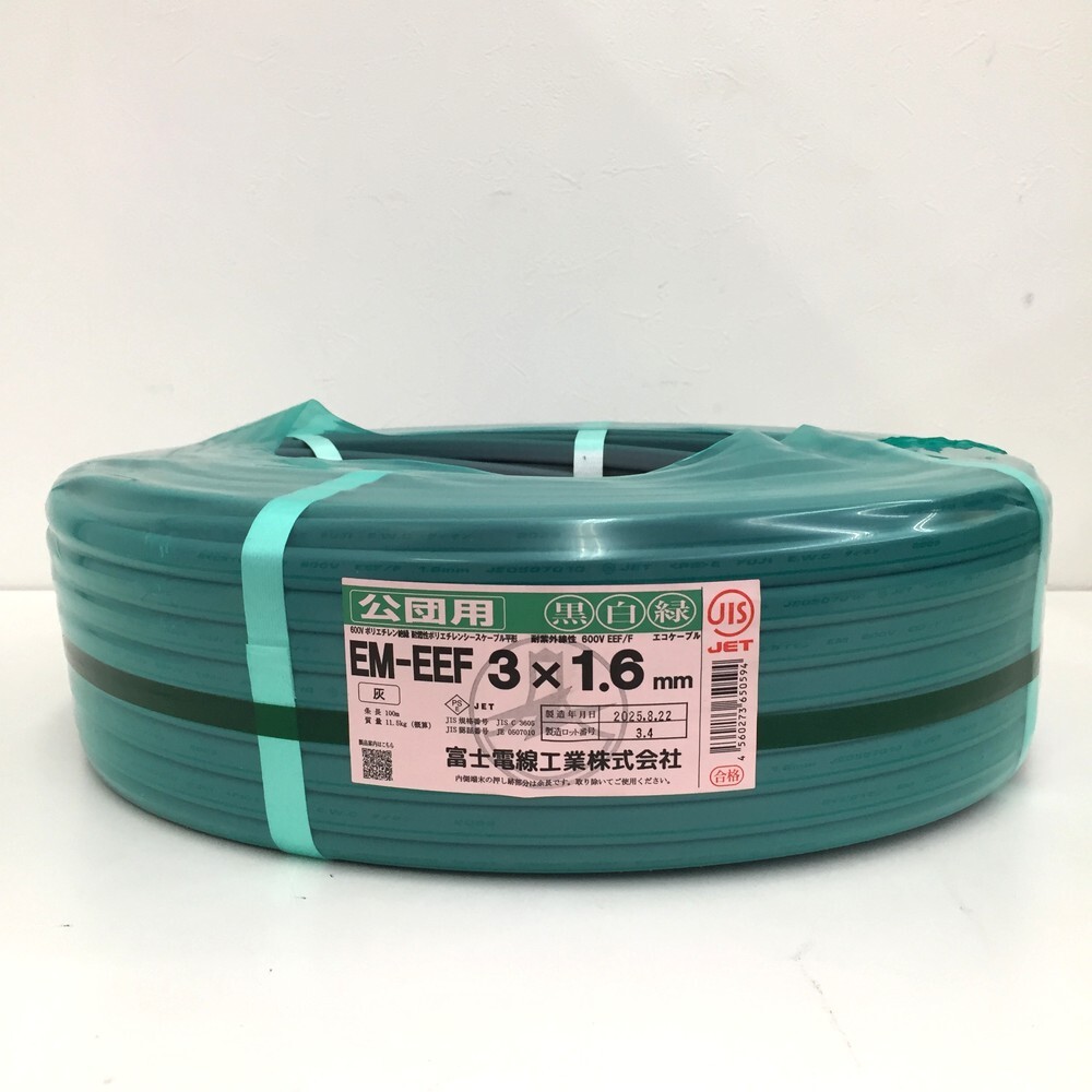 - 【同梱不可】【140】未使用品 富士電線 EM-EEF 3×1.6mm 100m 1巻 灰(黒・白・緑) 600Vポリエチレン絶縁ケーブル平形 公団用 ケーブル 電線