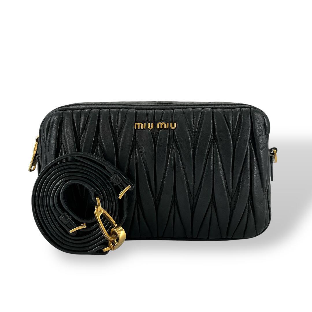 > ミュウミュウ MIU MIU ショルダーバッグ マテラッセ カメラバッグ ダブルファスナー 黒 ブラック ポシェット 金ロゴ レザー