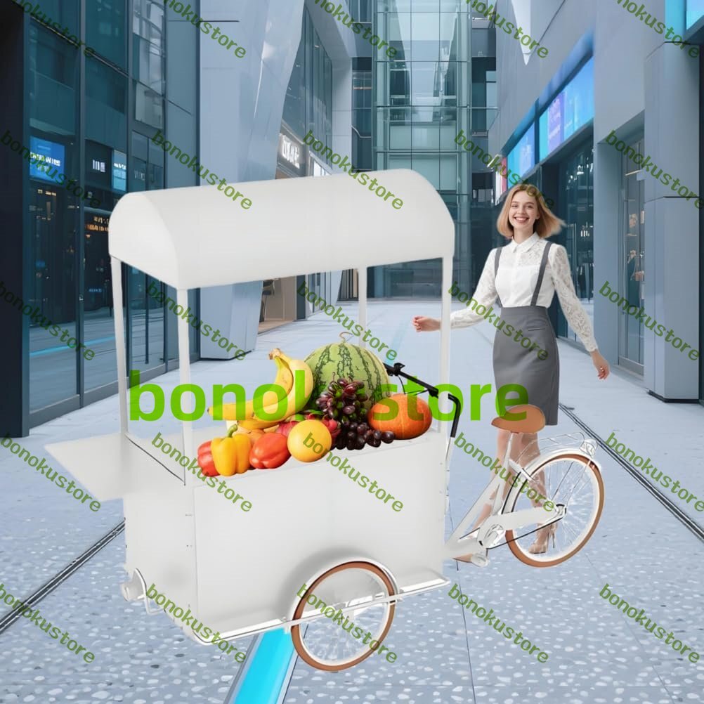 - 逆シート付き三輪車フードカート テールライト付き屋台食品販売三輪車 ショッピングモール ナイトマーケット用の食品飲料 白