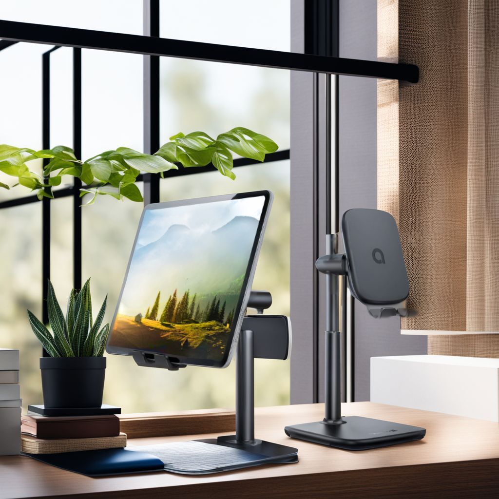 - おすすめ ☆汎用タブレットスタンド 高さ・角度調整 卓上縦置き 耐久性抜群 コン
