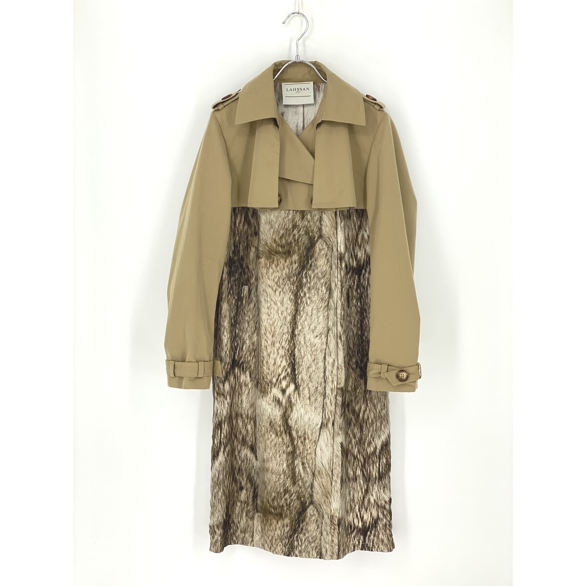 > B0046/美品 LAHSSAN ラーサン コットン シルク100% ドッキング 変形 デザイン トレンチコート ワンピース 36 M フランス製 レディース