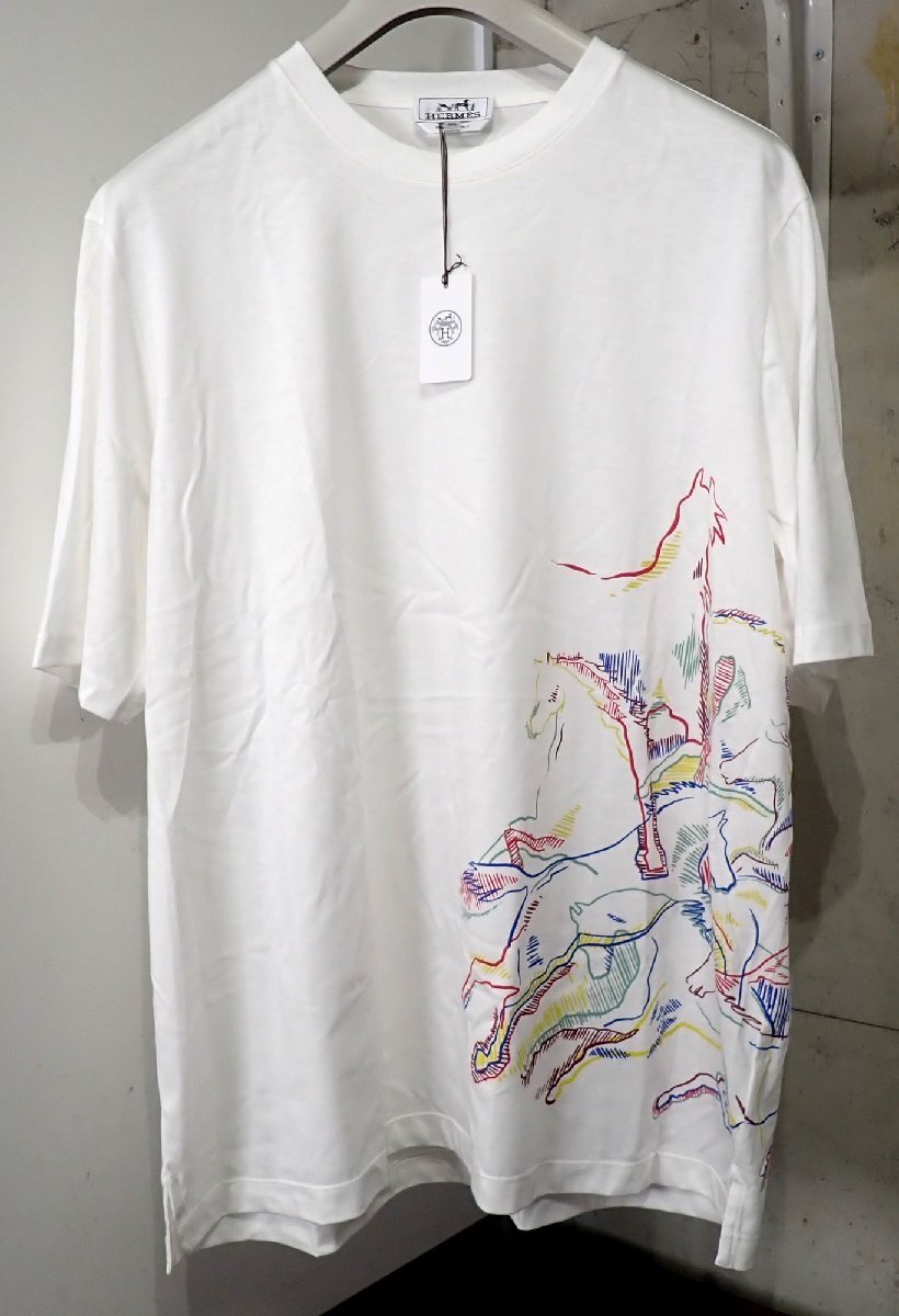 > 22SS 定価7.4万円ほど 新品タグ付き 未使用 エルメス HERMES カヴァルカード 半袖Tシャツ カットソー メンズ ホース 馬 XXL 3336
