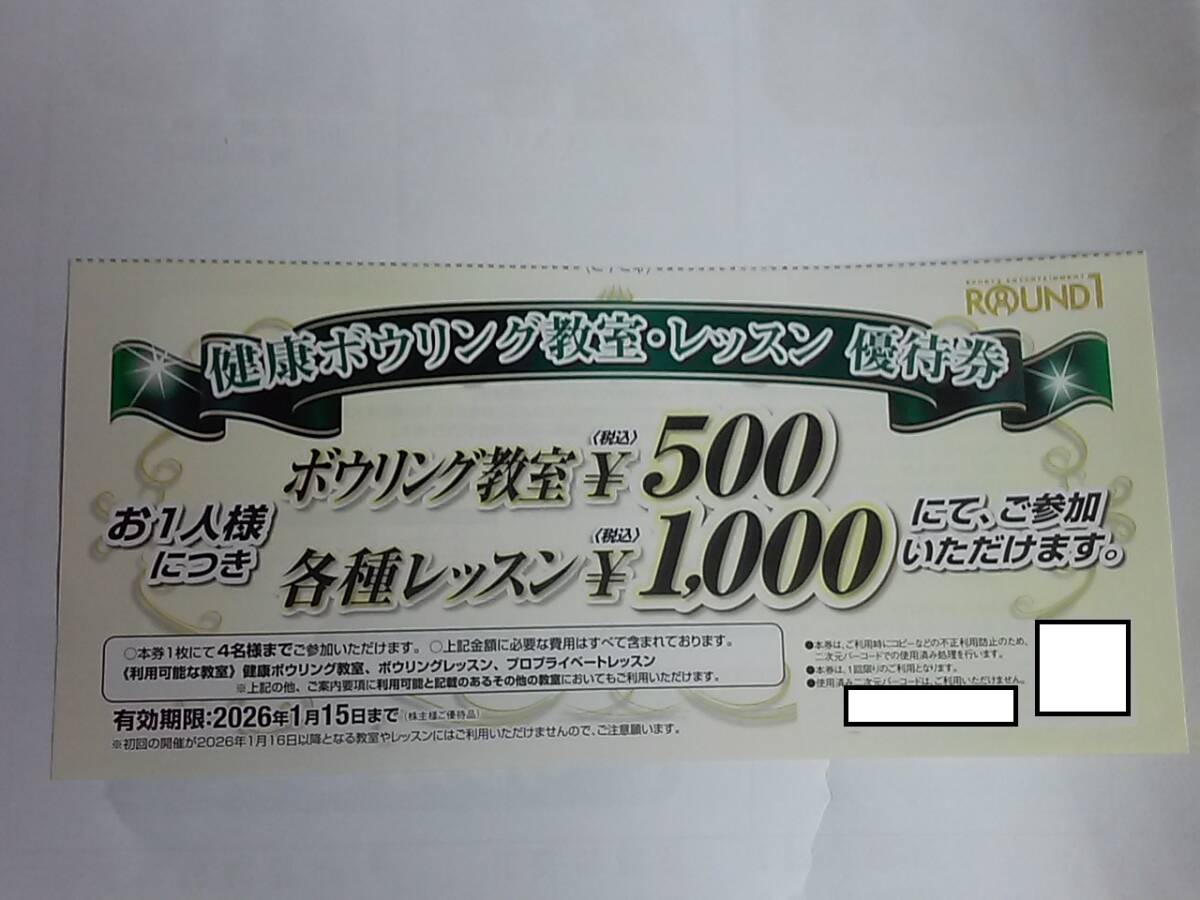 - ★☆送料84円~☆ラウンドワン ボウリング教室500円 各種レッスン1000円 株主優待券 26.1.15迄★優待 株主 株主優待☆★