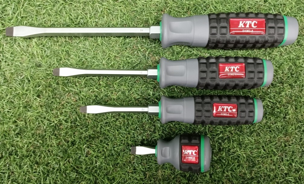 - 中古品 KTC 京都機械工具 樹脂柄ドライバ マイナス貫通タイプ D1M2-8、D1M2-6、D1M2-5 + 樹脂柄スタッビドライバ マイナス D1MS-6 計4本