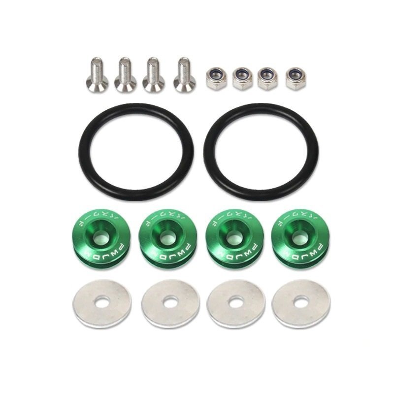 - クイックリリースファスナー バンパー 脱着が簡単に【グリーン】アルミ製 ダウンサス車のバンパー脱着がワンタッチ レーシングファスナー