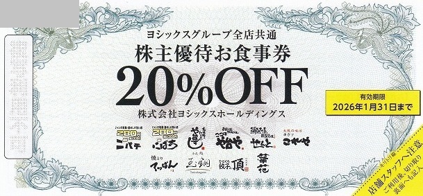 - 即決!ヨシックス 株主優待券 20%OFF 複数あり ニパチ・や台や・や台ずし