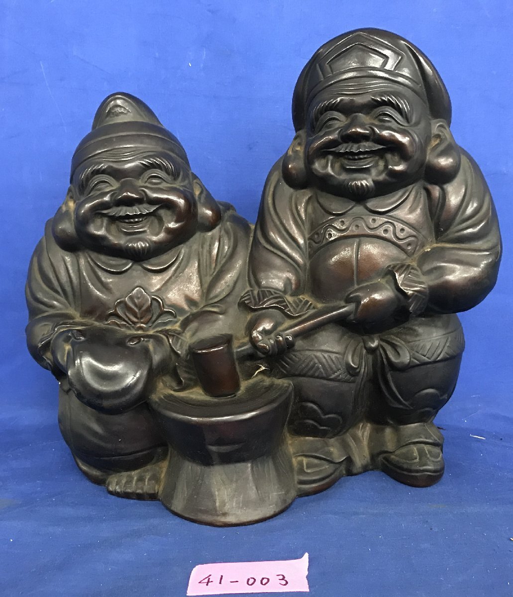- ★41―003★金属像 材質不明 金属製 恵比寿 大黒天 像 約高さ26cm/七福神 縁起物 レトロ インテリア オブジェ 置物 伝統工芸品[80]