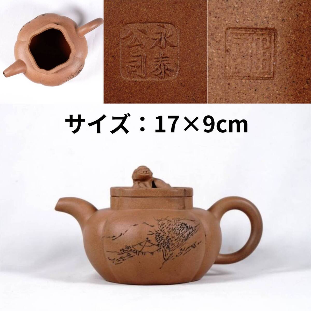 > 0927-1 関西同一蔵家委託 朱泥 急須 図文字刻 蓋裏 永泰公司 在銘 煎茶道具 中国古美術 古玩 中国アンティーク サイズ:17×9cm