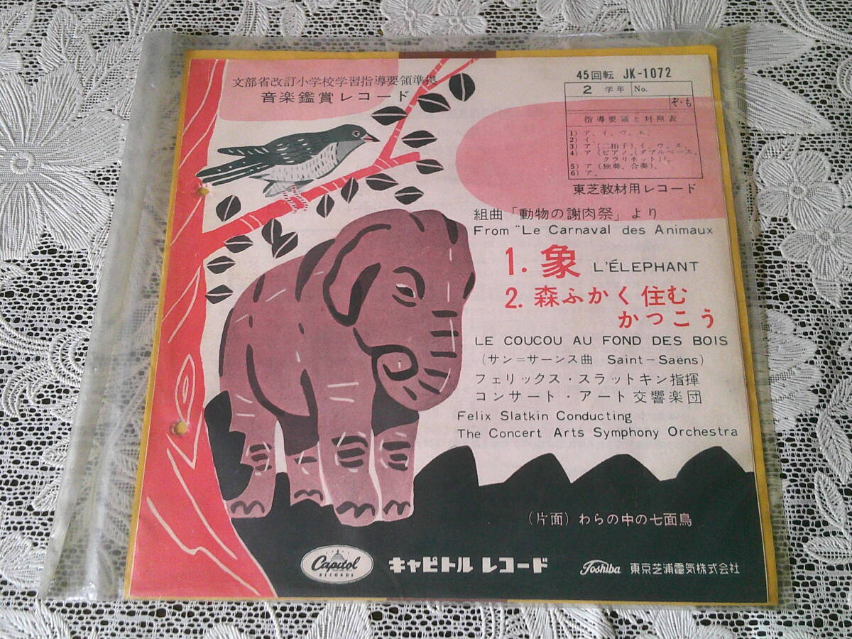 - 東芝教材用レコード EP シングルレコード 音楽鑑賞レコード 【小学2学年用 象/わらの中の七面鳥】 美盤 JK-1072 キャピタルレコード