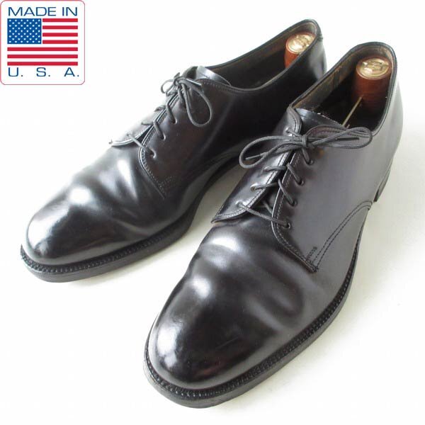 > 希少 60s-70s USA製 USMC×French Shriner コードバン プレーントゥ 黒 幅狭28cm 米軍 サービスシューズ 古靴 ビンテージ D148-32-0011ZTW
