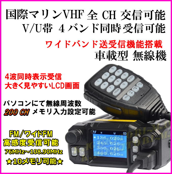 > 国際マリンVHF 全チャンネル交信OK & V/U帯4バンド 同時受信可能 ワイド送受信&各種 情報受信OK ♪ 車載型 無線機 新品 /過激飛びMAX