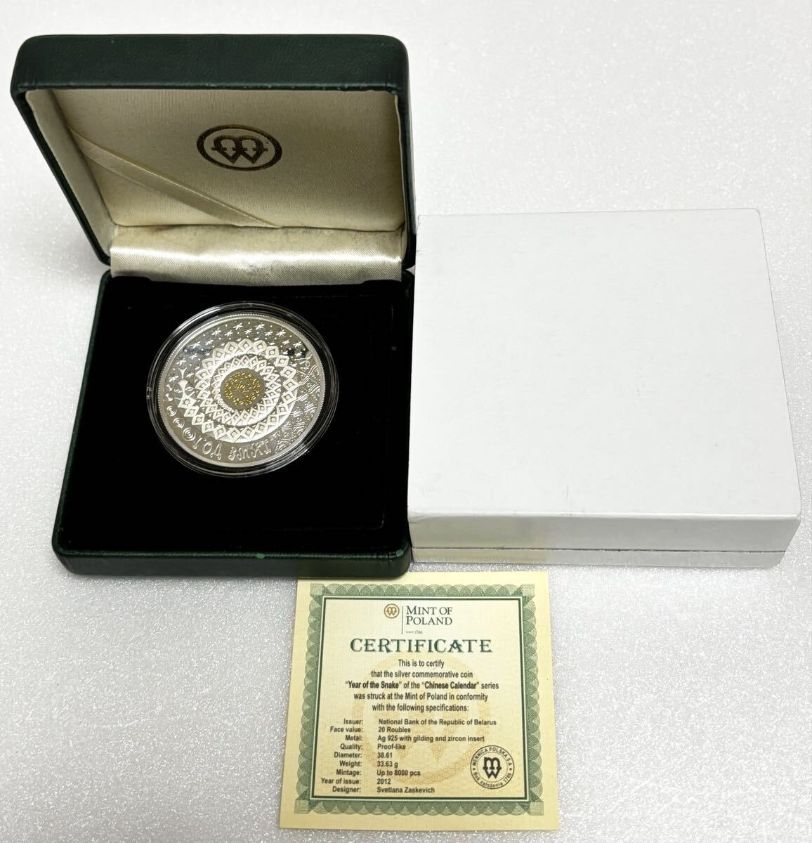 > ベラルーシ 20ルーブル 銀貨 蛇 プルーフ銀貨 2012 Belarus 20 rubles Year of Snake chinese calender proof silver coin