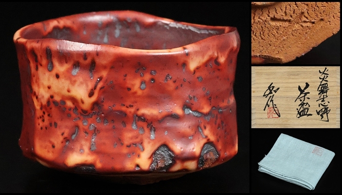 - 【 山田和 】最上位作 炎舞志野茶碗 師 加藤唐九郎 名碗! 共箱 保証