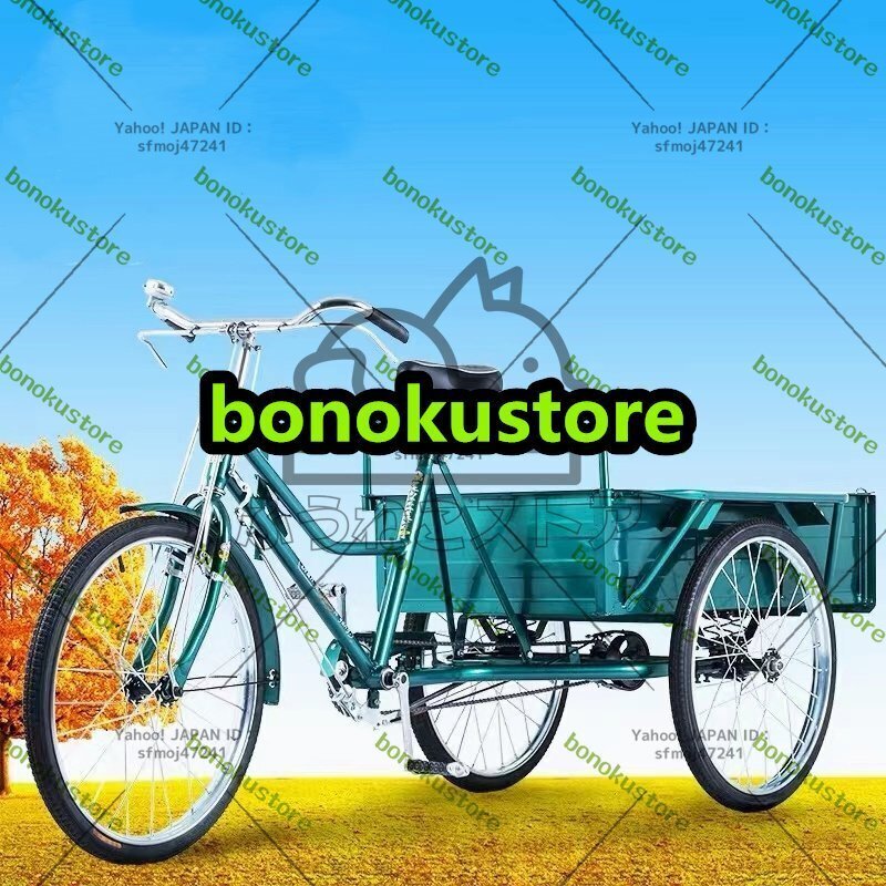 - 超人気 グリーン 三輪自転車 大人用貨物三輪車 大容量 貨物バスケット後カゴ付 ダブルブレーキ 三輪車 24インチ 載荷重80kg