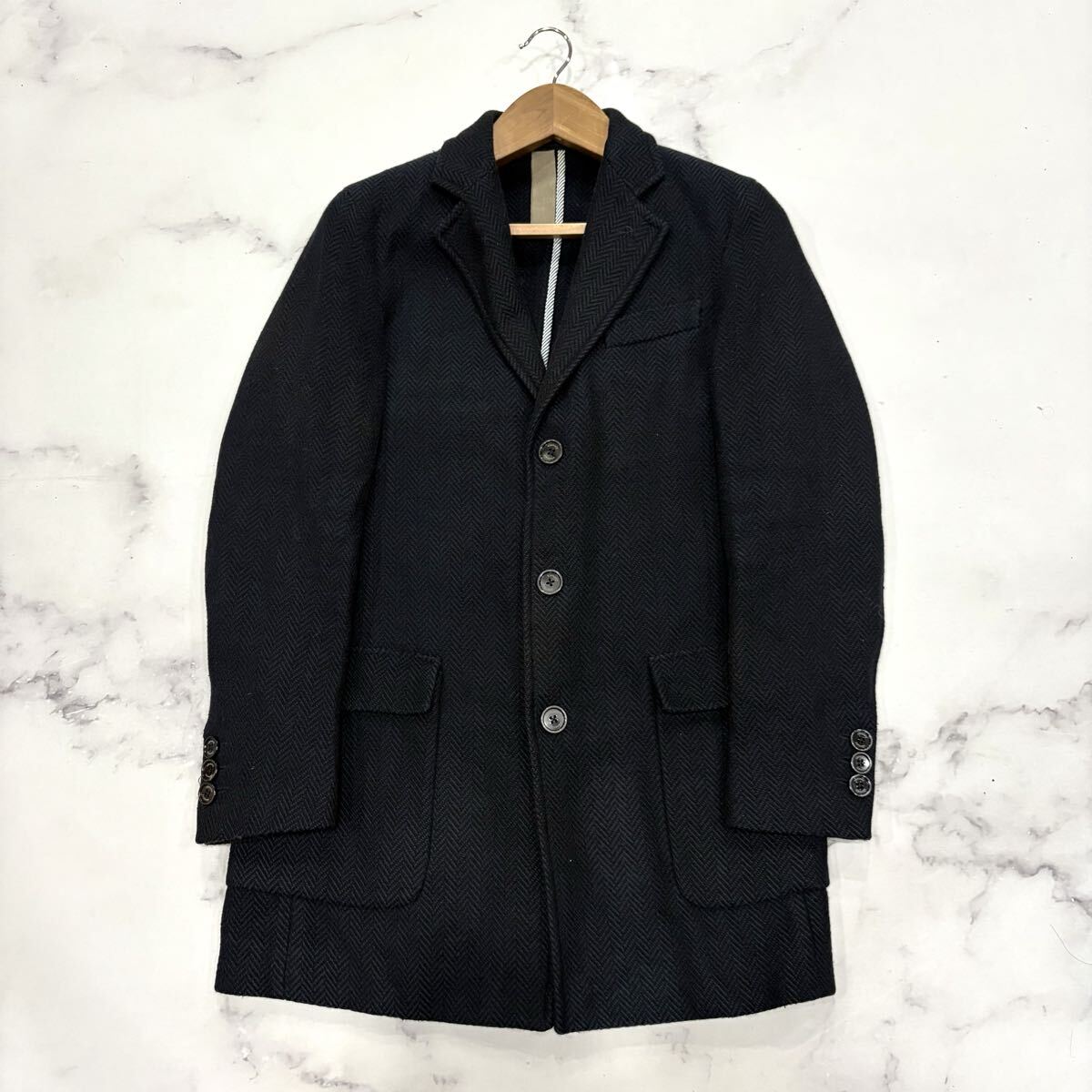 > AL ■ イタリア製 '洗練されたデザイン' eleventy イレブンティ WOOL&LINEN混 チェスターコート 44 メンズ 紳士服 アウター 古着 NAVY系