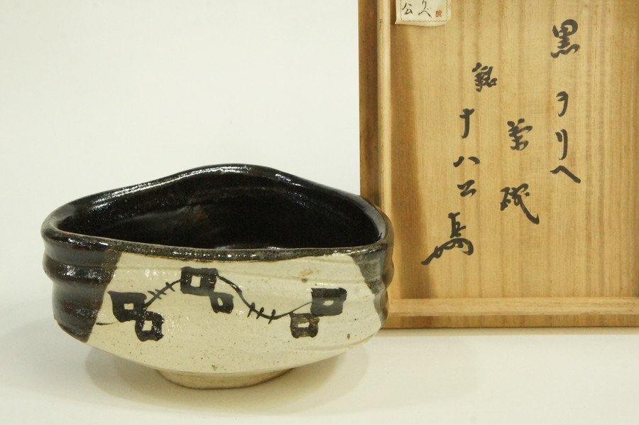●表千家十三世家元 即中斎書付 古陶磁 黒織部 茶碗 銘・十八公