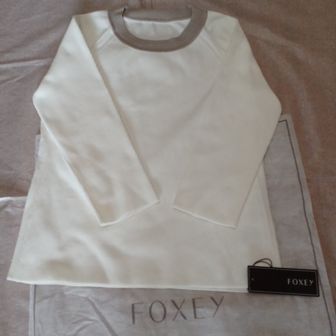 - *フォクシーブティック新品タグ付き Silver Shade 長袖ニットトップス ロイヤルホワイト&グレージュ