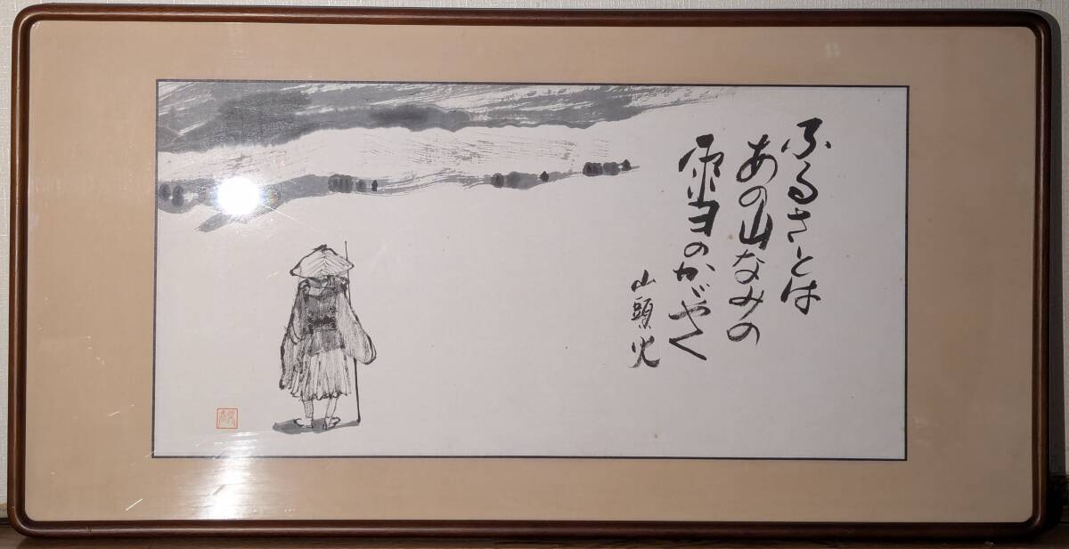 - 【模写】書 種田山頭火 ふるさとの山 山頭火の俳句と水墨画額装 Z21