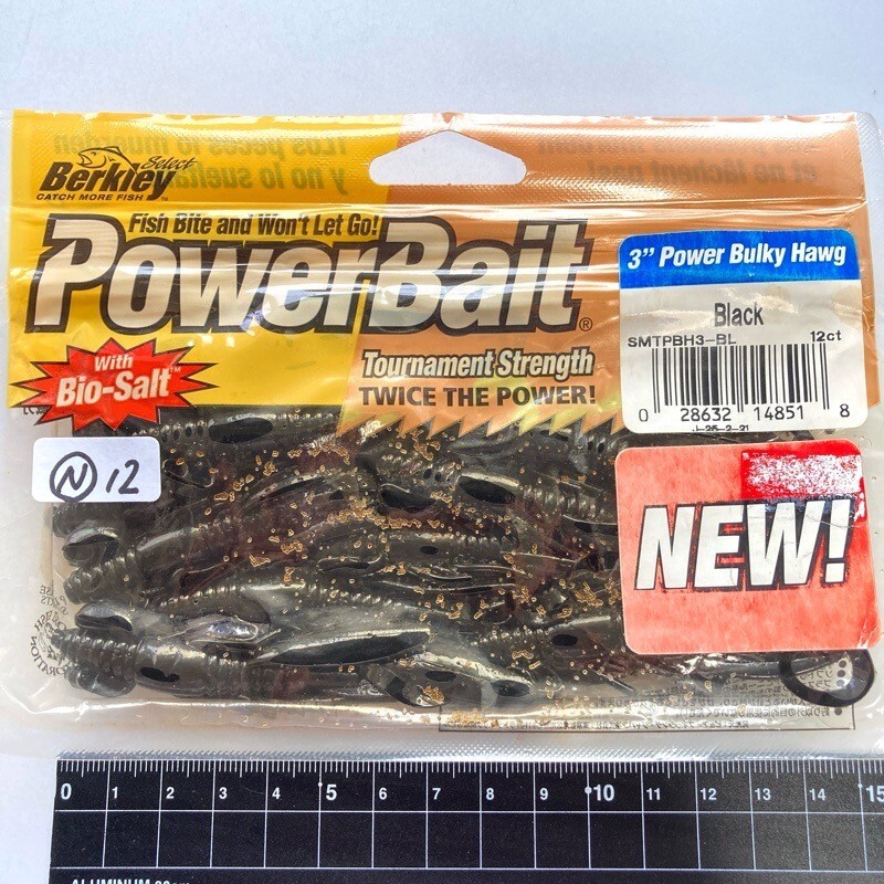 > 815050 新品 バークレイ 3インチ パワーバルキーホッグ 12本 #ブラック BERKLEY バス釣り パワーホグ 根魚 カサゴ チニング
