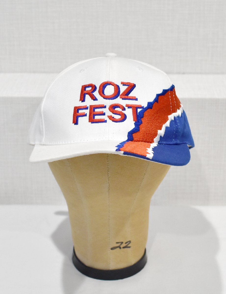 - ビンテージ NISSIN CAP ROZ FEST 白×赤×青 BBキャップ ベースボールキャップ 帽子 白レザーベルト付き サイズフリー EE1404-1-70-EE26