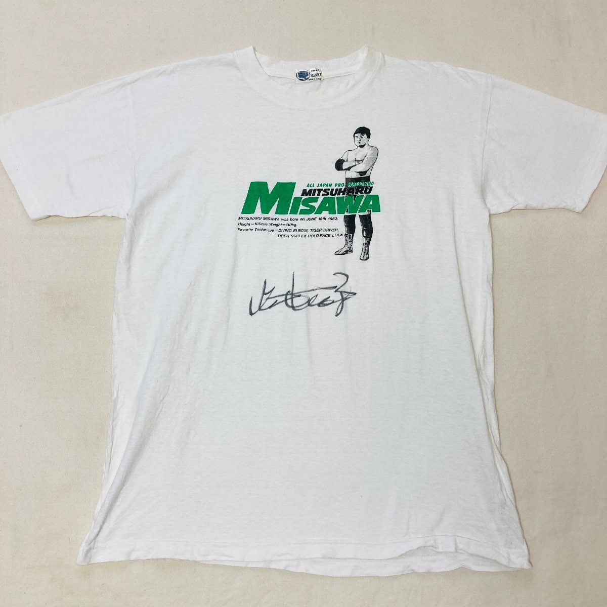 > ALL JAPAN PRO. WRESTLING 全日本プロレス 三沢光晴 MITSUHARU MISAWA プリント Tシャツ ホワイト/白 サインあり