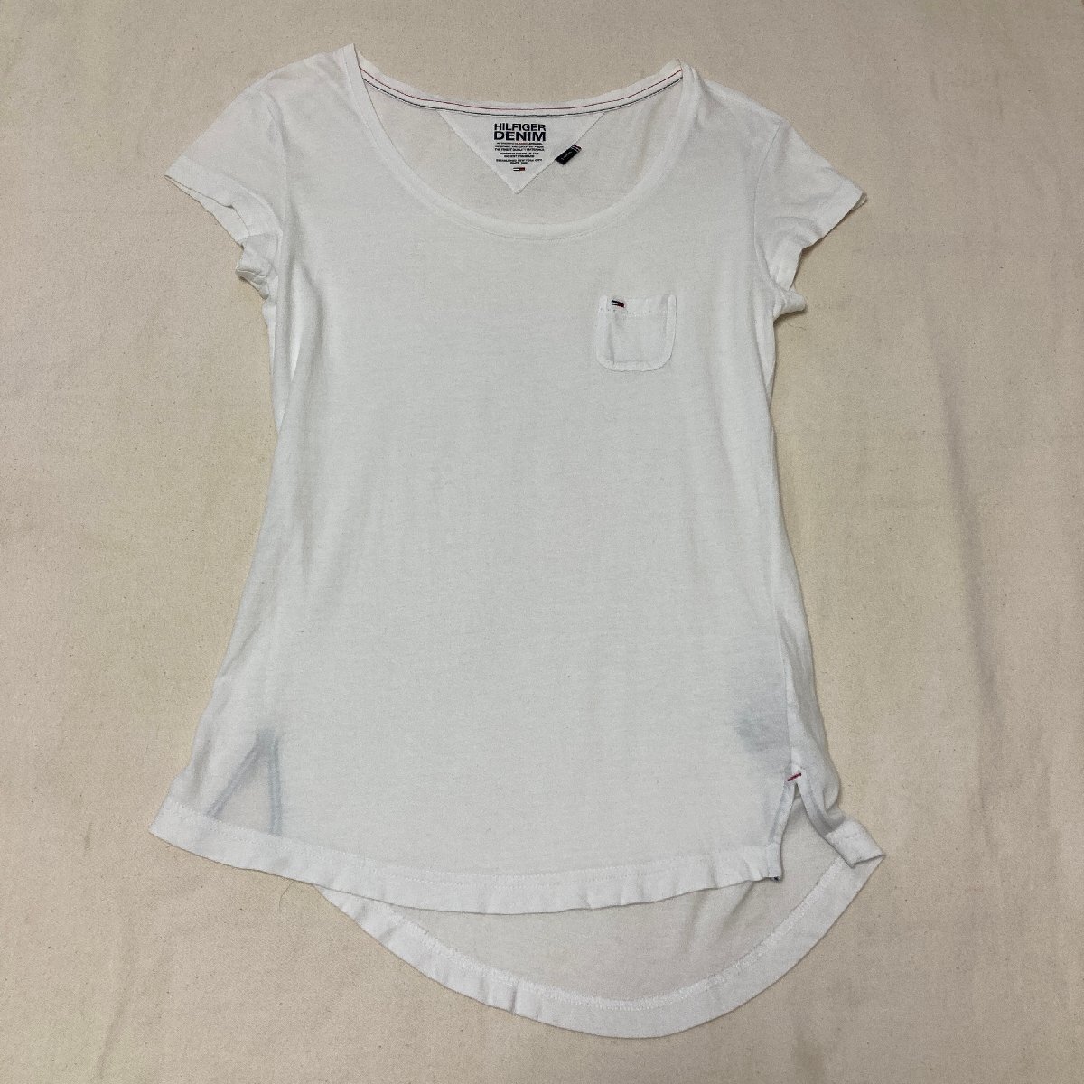 - TOMMY HILFIGER DENIM トミーヒルフィガー ポケット付き Tシャツ ホワイト/白 X-SMALL
