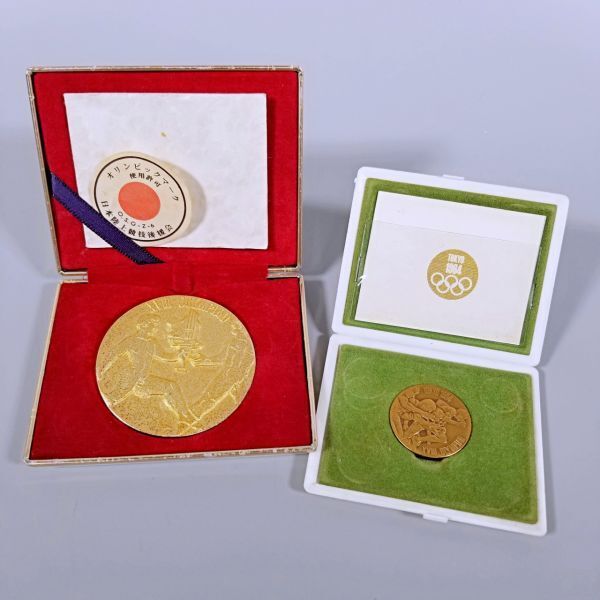 > 1964年 オリンピック東京大会 日本陸上競技後援記念メダル 記念メダル + 銅メダル 2個セット ケース入り 昭和レトロ