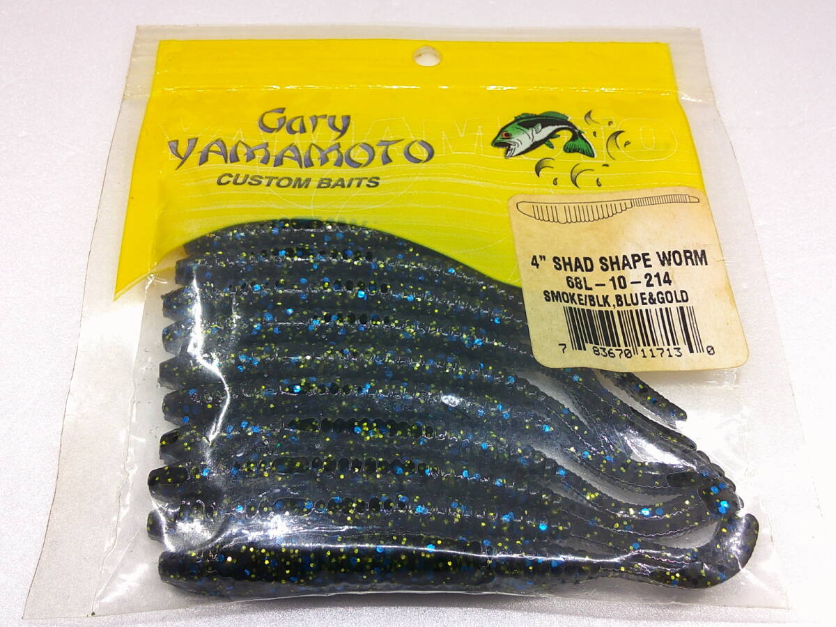 - ☆ゲーリーヤマモト 4"シャッドシェイプワーム 68L-10-214 SMOKE/BLK.BLUE&GOLD 新品