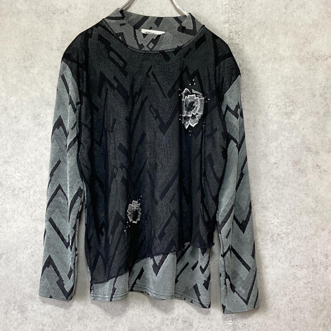 - go two(M)モックネックカットソー*昭和レトロ*ストレッチ*バラ柄*総柄