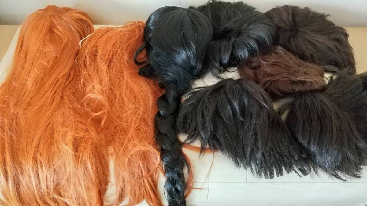 - ② ウィッグまとめて ロングウィッグ 部分ウィッグ かつら ブラック ブラウン ショートヘアー 中古品