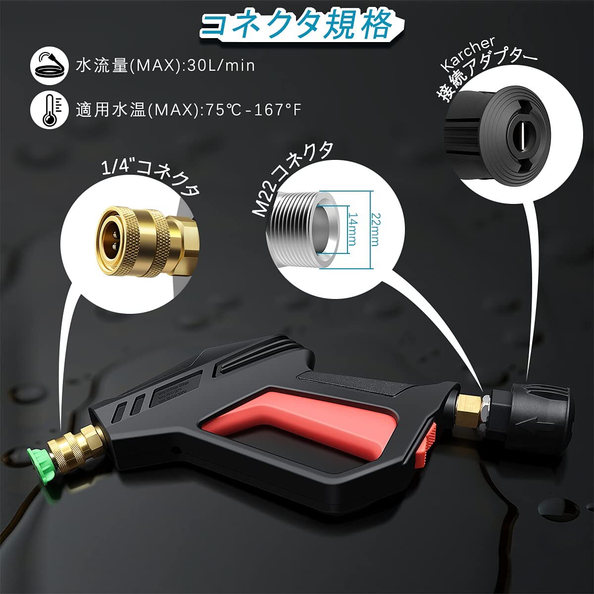 - ショートガン 5つのノズル 洗車や掃除に適用 高圧洗浄