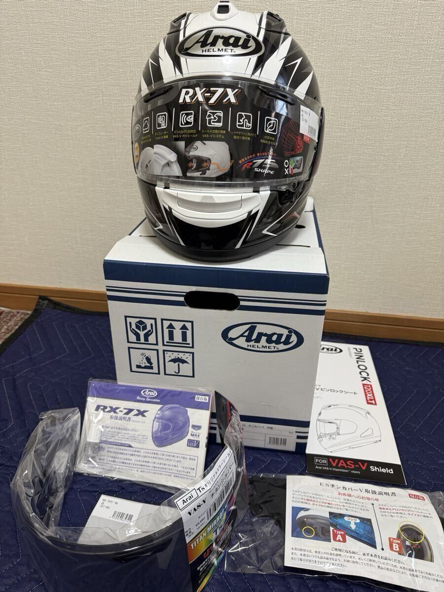 - 新品未使用!!Arai アライ RX7-X RADICAL ラジカル ホワイト Lサイズ変更 59-60CM ミラーシールド MVピンロックシート 元箱表記Mサイズ