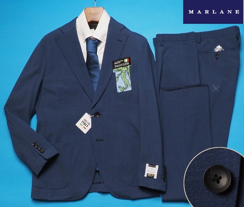 - 新品8.6万円 大手百貨店扱い 春夏『MARLANE マルラーネ 伊製生地』シアサッカー セットアップ スーツAB5青(F) 1654091
