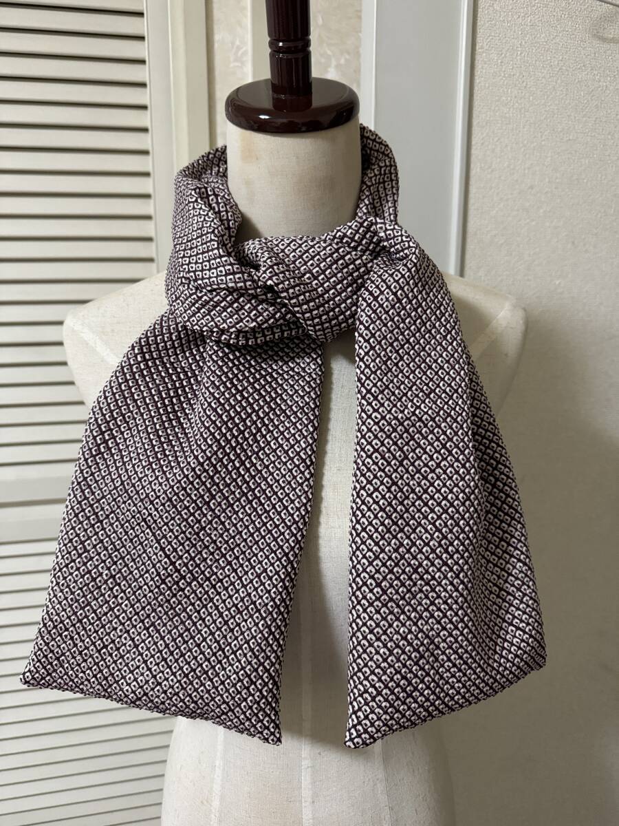 - 総絞り かのこ 16×130cm 正絹 マフラー 茶系 / 襟巻 ハンドメイド シルク 絹 着物リメイク 鹿の子