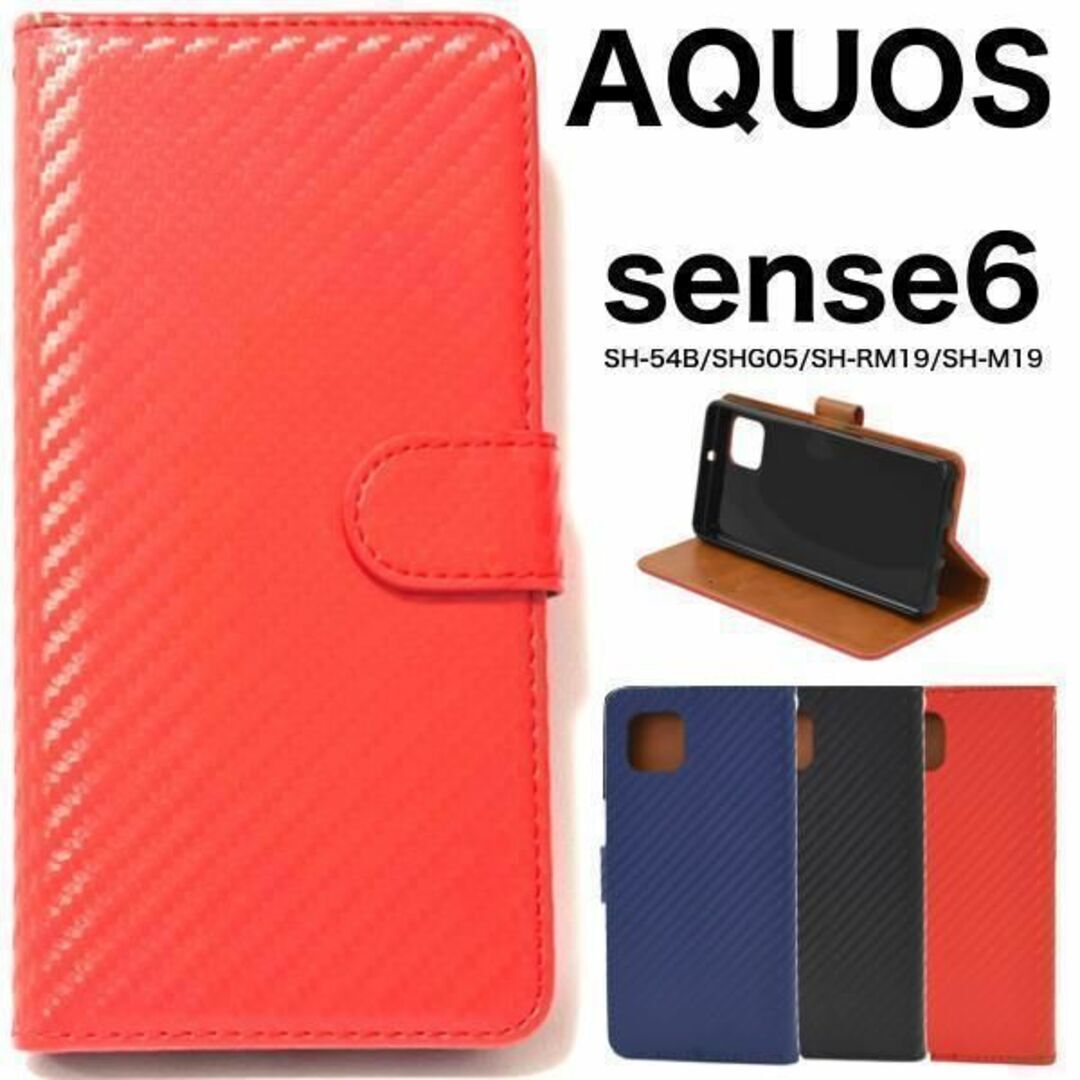 > AQUOS sense6 SH-54B/SHG05 カーボンデザイン手帳型ケース/アクオススマホケース