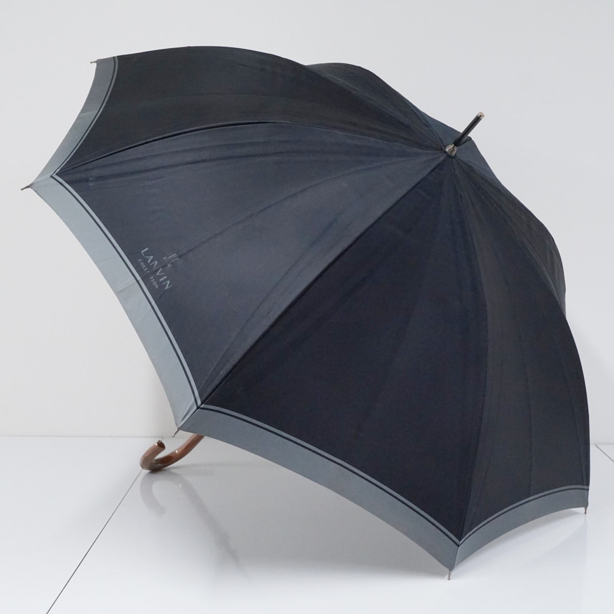 > 傘 LANVIN COLLECTION ランバンコレクション USED美品 ブラック メンズ ロゴ 紳士傘 大判 ジャンプ 65cm A3233