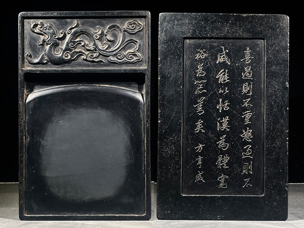 - 【安】清時代 方亨咸銘 眉紋歙硯 龍紋硯 書道具 文房具 極細工 中国古美術 時代物 古董品 360