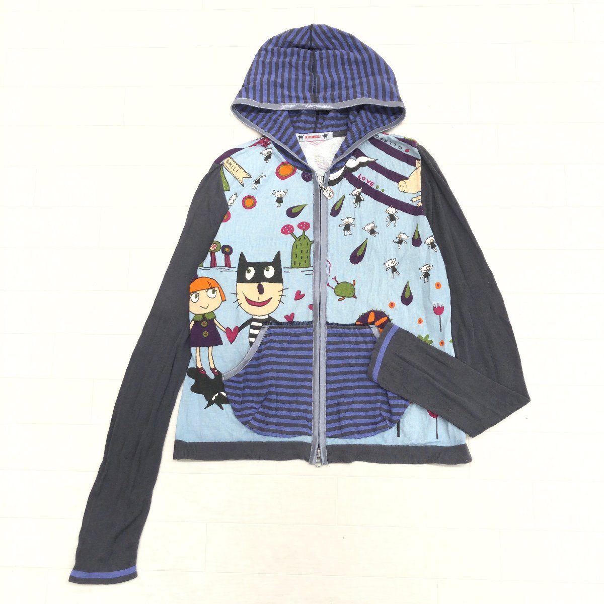 - OLLEBOREBLA アルベロベロ オレボレブラ 総柄 コットンニット ジップアップ パーカー F 日本製 フーデット ジャケット カーディガン 羽織り