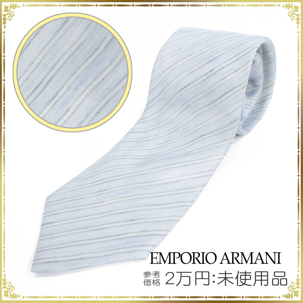> 【全額返金保証・送料無料・未使用品】エンポリオ アルマーニのネクタイ・正規品・ヘンプ シルク製 ラインストライプ シンプル ビジネス