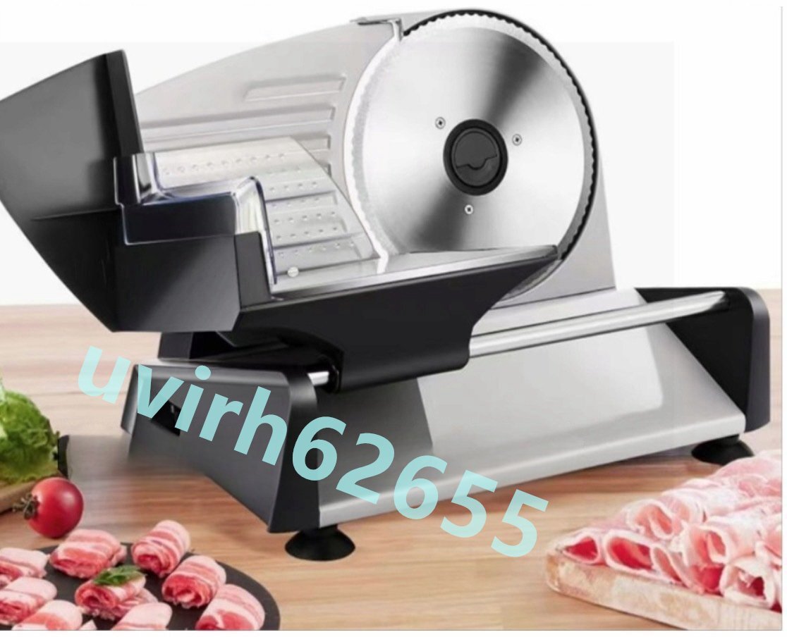 > 電動スライサー フー しゃぶしゃぶ肉/パン/ハム/野菜/果物 スライス厚さ1-15mm調整 均一スライス お手入れ簡単 安定作業 150W