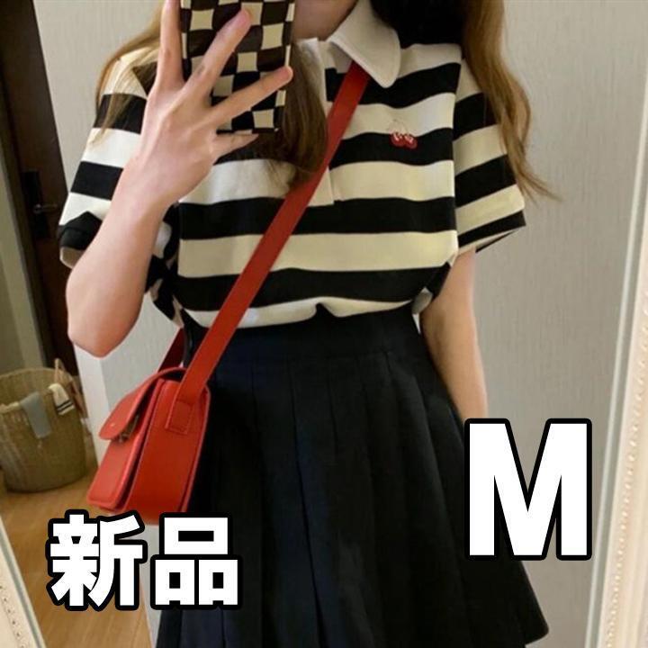 - ★大人気につき在庫わずか!次入荷未定!最終値下げ!新品未使用 レディースポロシャツ半袖 ボーダー M 006350M