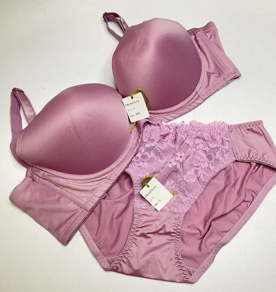 - CR16372-54 IB⑦【特価】新品 ブラショーツ E80/L 1セット ピンク レース 脇高 刺しゅう ストレッチ おしゃれ 華やか レディース