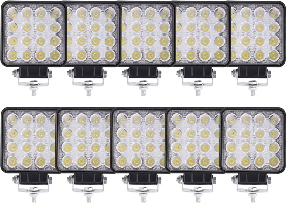 - LEDワークライト 作業灯 48W 12V 24V トラクター用 防水防塵 オフロードSUVトラック オートバイ 自動車 汎用作業灯ライトバー 10個セット